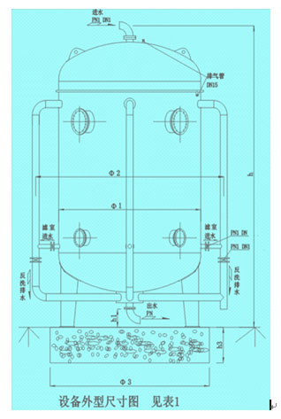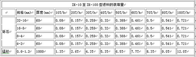 濾層厚度:1.0-1.2m; 進(jìn)口壓力≧0.06Mpa; 設(shè)備承受壓力:0.06-0.3Mpa、0.3-0.6Mpa、0.6-1.0Mpa。
